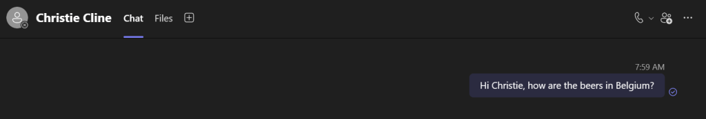 When taking a look at the user experience for teams I’ve created some examples. Let’s see what happens when Allen from the previous example wants to continue his 1 on 1 chat with Christie.