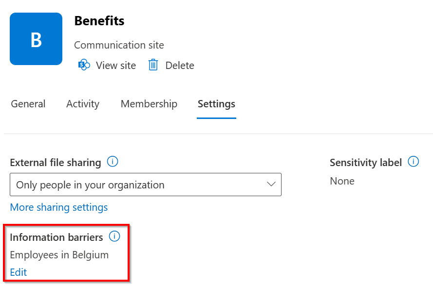 Before configuring the site, you should know that a SharePoint site can be configured in 1 of 4 Information Barrier Modes: