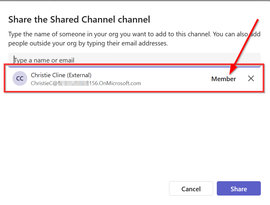 Now Christie (different user, same domain 😄) from the “156” organization is successfully added to the shared channel!