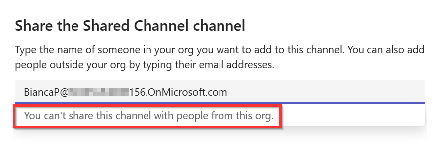 Now let’s add Bianca from organization “156” directly to a shared channel: