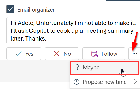 The meeting follow response in Outlook explained
