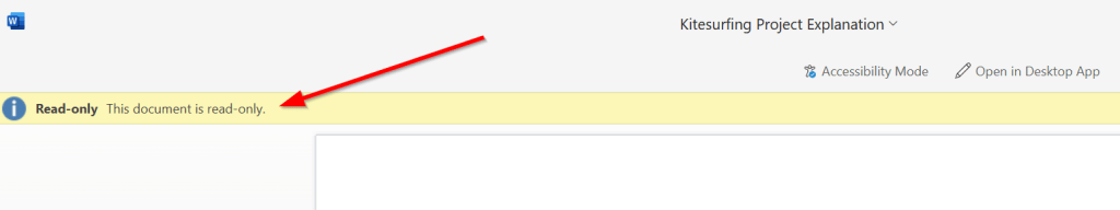 As expected, this fails. The yellow ribbon tells us the document is read-only.
