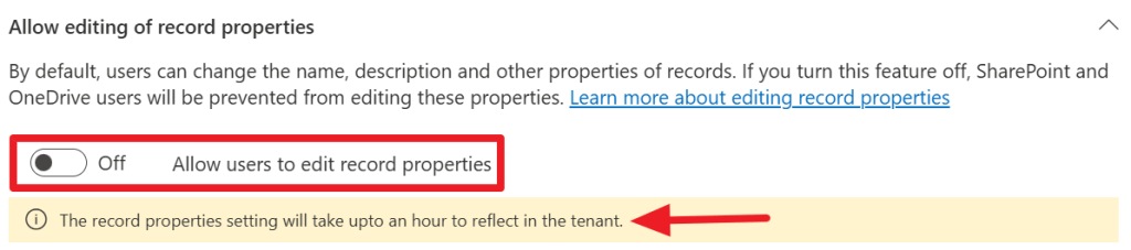 When the ‘Allow users to edit record properties’ switch is turned off, the following behavior is configured.