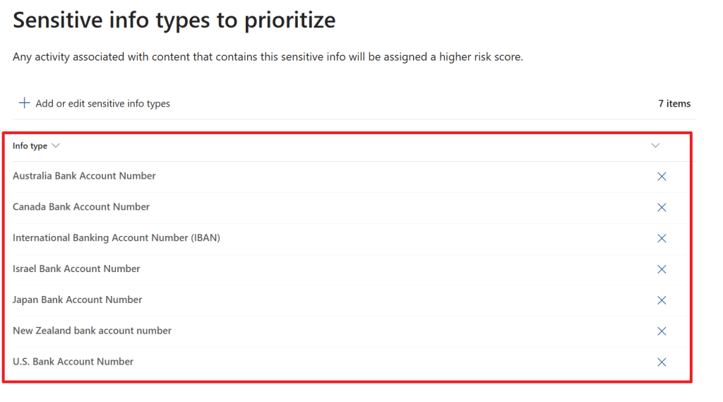 In this example, I have chosen to prioritize content in the ‘Sales and Marketing’ SharePoint site, content that holds the ‘Confidential – Finance’ sensitivity label or one of the sensitive info types that are shown above. If you want, you can also choose to get only alerts for activities that include priority content, or get an alert for all activity that is seen in your environment that matches this policy.