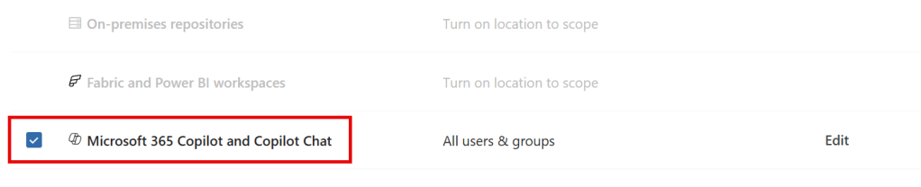 On the Locations page, we can now see that the ‘Microsoft 365 Copilot’ location is no longer in preview and Copilot Chat is now included!