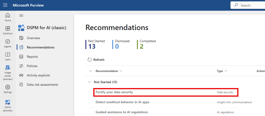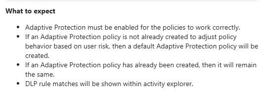 - You should have Adaptive Protection enabled, if this isn’t been enabled and configured in your environment, DSPM will create a default Adaptive Protection policy for you.
