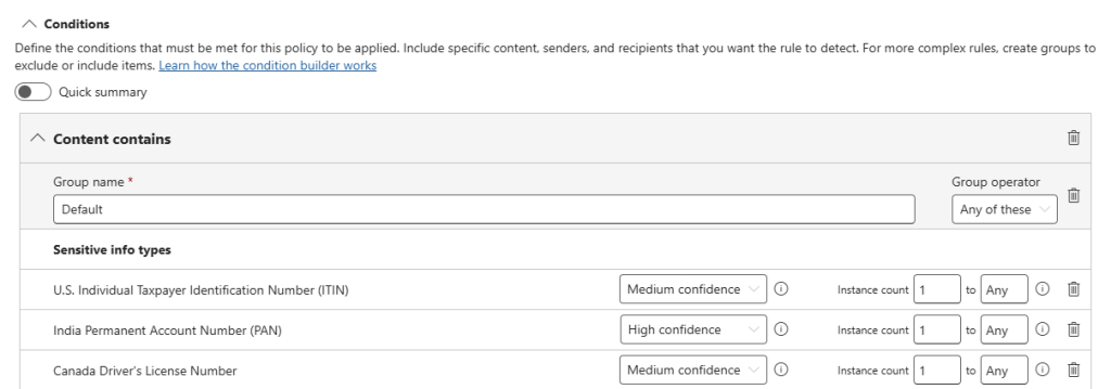 With these prerequisites all set up, let’s dive into the Data Loss Prevention solution and take a look at the details of every policy!