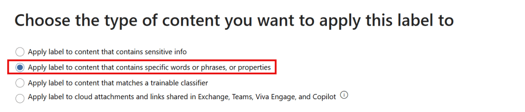 First, select ‘apply label to content that contains specific words or phrases, or properties’