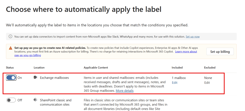 Note that DLM retention labels will apply to items in your primary mailbox AND your archive mailbox. No additional configuration is needed for this.